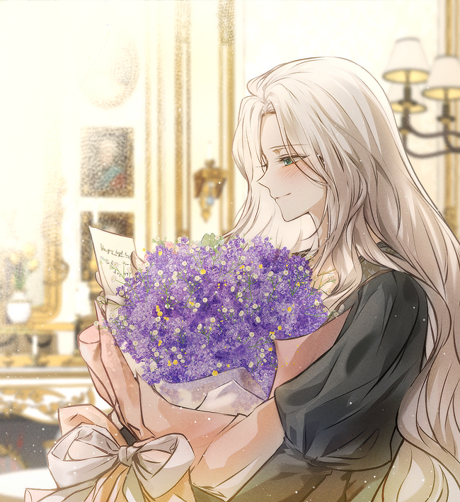 عند دخول الغرفة، كان الأمر كما قال كبير الخدم، كانت هناك باقة من الزهور على المنضدة .