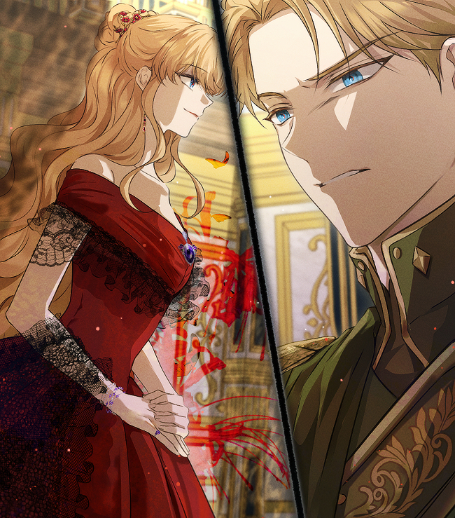 الدوق الأكبر ذو الشعر الأسود و أوليڤيا ذات الشعر الفضي يسيران في الحديقة. على الرغم من أن فرسانهم يسيرون خلفهما بانضباط، كان الدوق الأكبر و أوليڤيا يشعّان .
